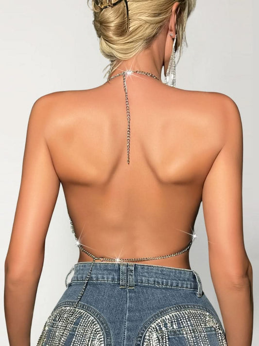 Économisez 34%Top Strass Argenté Chaînettes Dos Nu